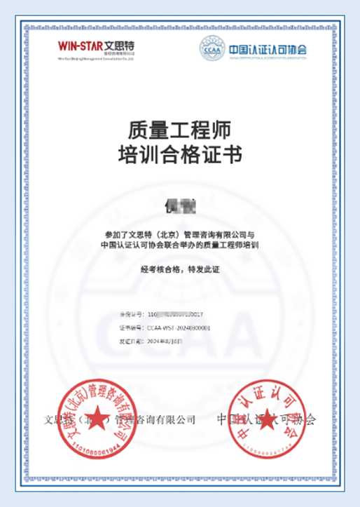 各相关单位及人员:为响应“质量强国”战略,帮助质量人才构建完整的知识架构,培养适应时代发展的高素质质量人才,以适应不断变化的市场需求,保持竞争力。中国认证认可协会培训部与文思特(北京)管理咨询有限公司联合录制了“质量工程师”训练营课程,课程在国家质量基础设施培训服务平台上线推出。学员通过60小时的逐级听课与通关测试,可以全面掌握“质量专业理论”和“质量管理专业实务”两大维度的专业知识,系统提升专业技能,为自身的职业发展奠定基础。欢迎各有关单位和个人结合自身需求积极参与课程学习。(一)每年两期,首期开营时间2024年9月1日,随报随学,营期为5个月。每期的最后一个月安排考试。