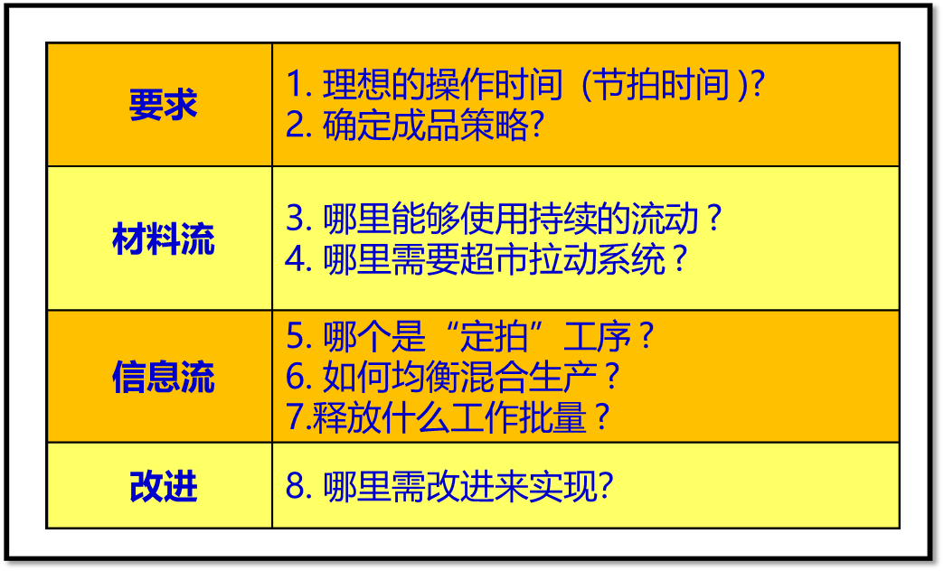未来价值流要考虑的问题(见上图序号标注处):