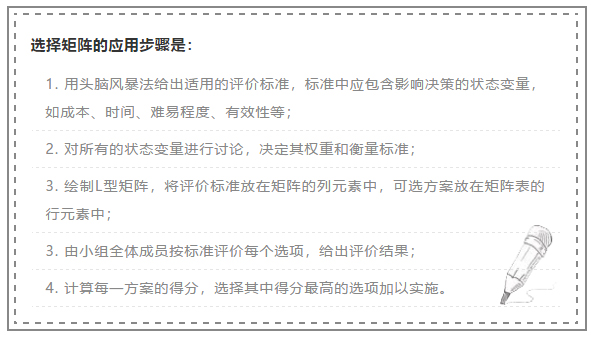 从以上的案例中我们可以看到,应用选择矩阵,可以集众人智慧以避免非理性选择,从而提升我们的决策质量。