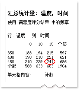 结论:在“时间”为“15”,“温度”为“450”的配置下,继续优化,提高顾客满意度的评分结果。