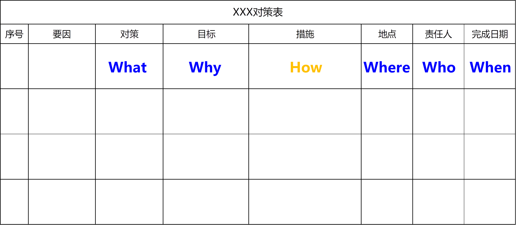 3. 按5W1H要求制定对策表,对策要明确、目标可测量、可检查,措施具体。