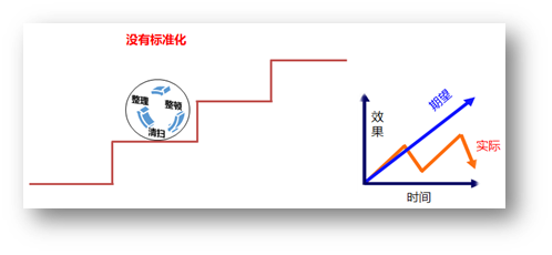 这也是许多企业不能长期维持5S的原因,没有标准化。