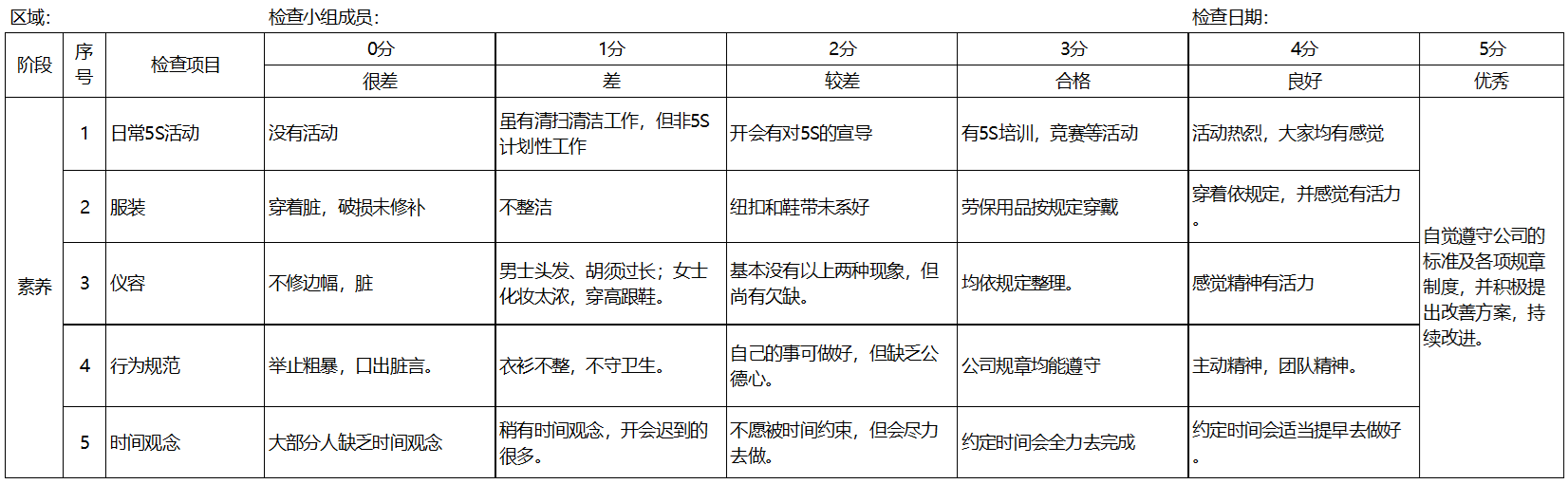 5S审核表举例: