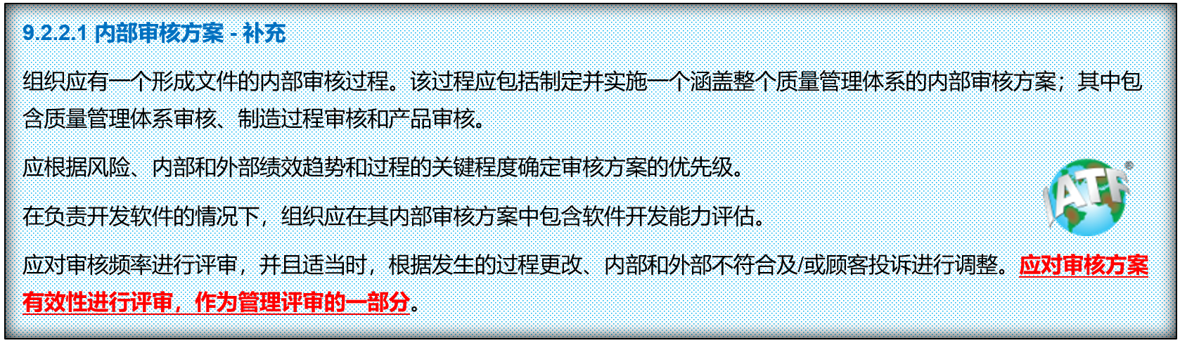 IATF 16949:2016中条款9.2.2.1 内审方案 – 补充