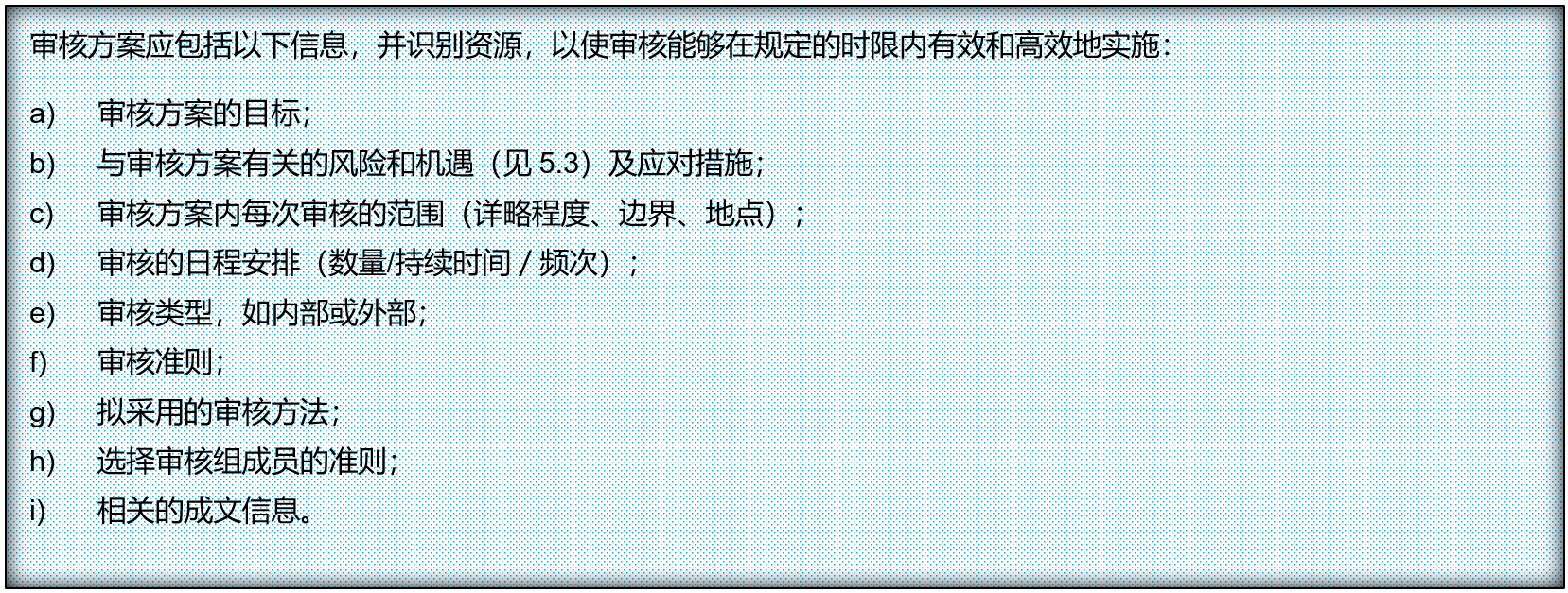 【提示】ISO 9001标准中的提及的审核方案所包含的信息内容并不完整,见 ISO 19011,其5.1章节的信息作为参考(节选):