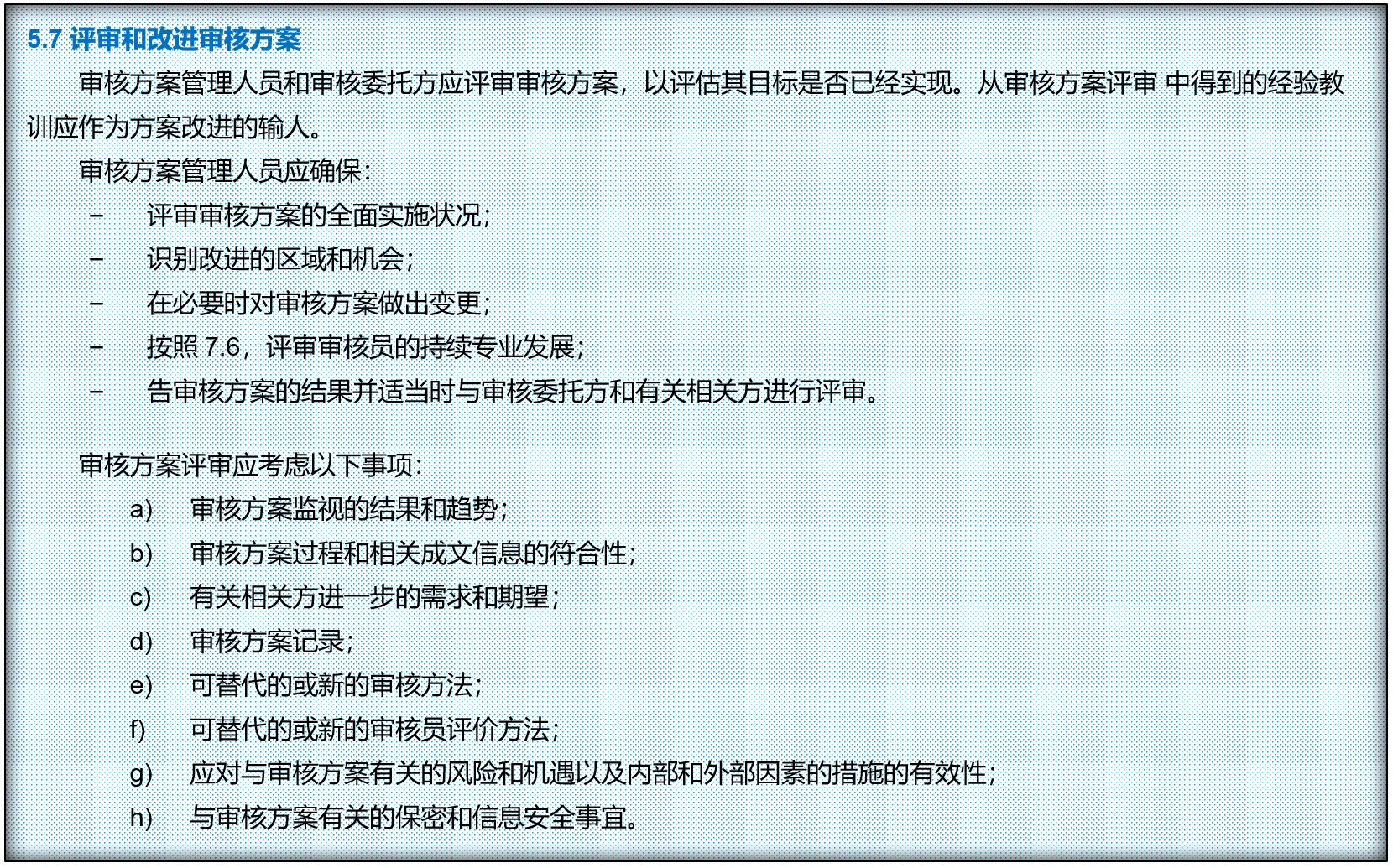 因篇幅有限,本文不拟对ISO 19011进行完整的解释,所谈及内容和参考示例,仅为您开展“内审方案有效性”评审的方式和方法做一些借鉴。