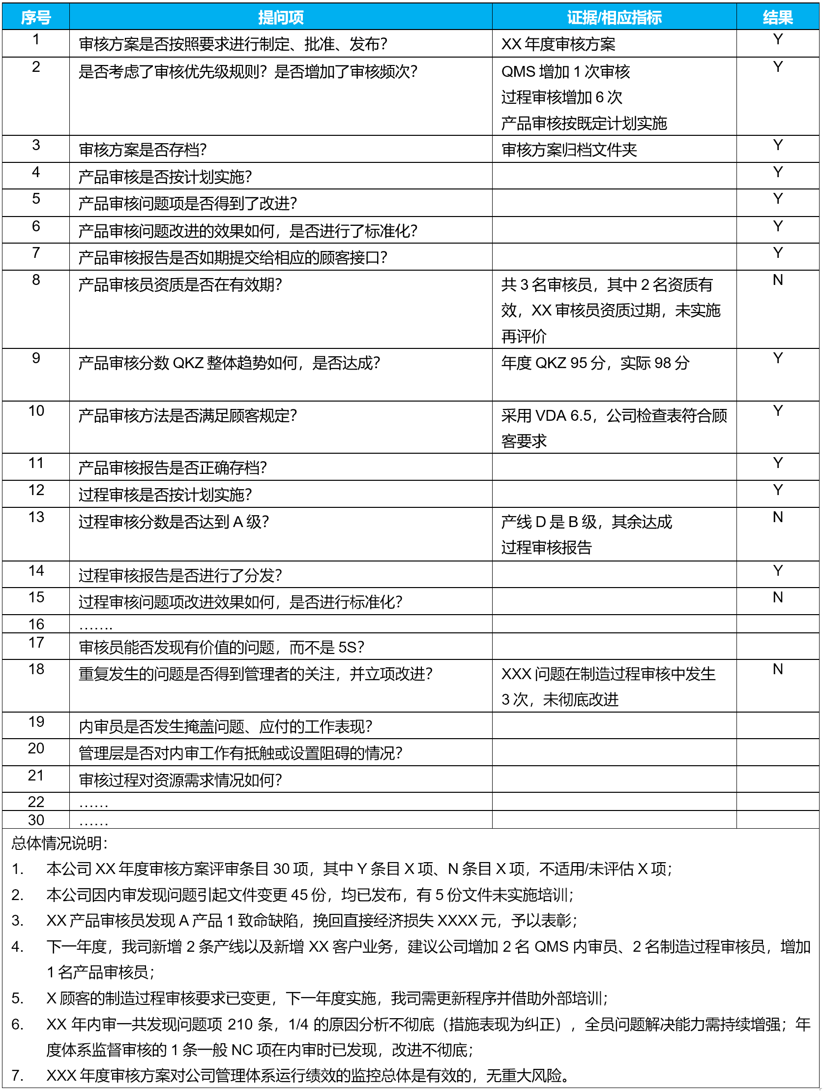 【提示】采用“检查表”并结合 ISO 19011标准5.7条款的要求一并实施是可取的: