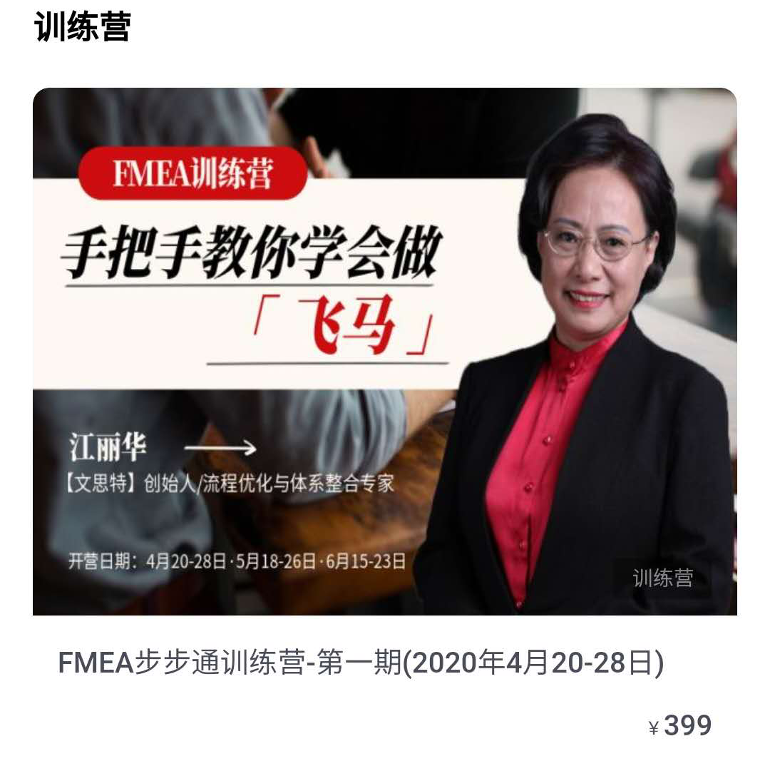 FMEA训练营-第2期 FMEA训练营-第3期 |