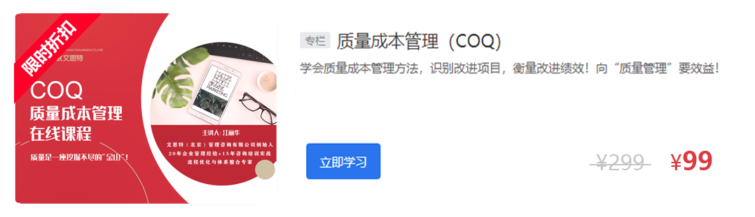 优秀企业的质量成本约占销售额的1%,而管理不善却可高达20%!