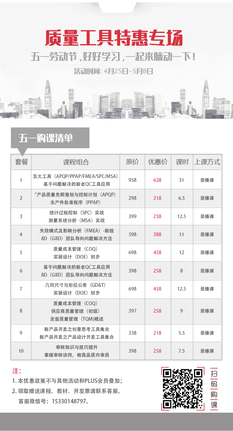新版 FMEA 公开课 5月13-14日北京开班,报名从速!