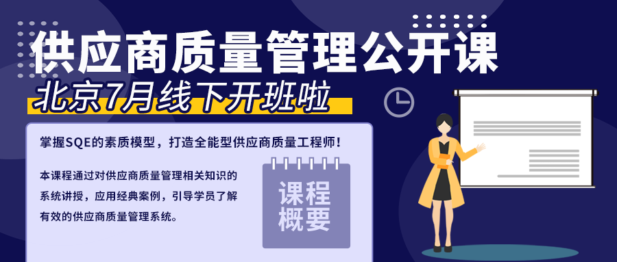 《供应商质量管理》公开课,7月26-28日北京开班,报名从速!