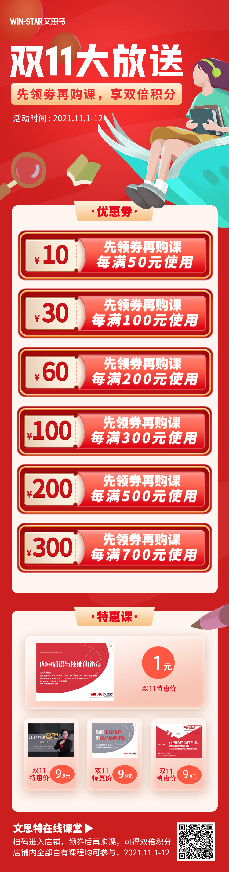 文思特在线课堂双11购课福利来了!领劵购课,享双倍积分,优惠多多!
