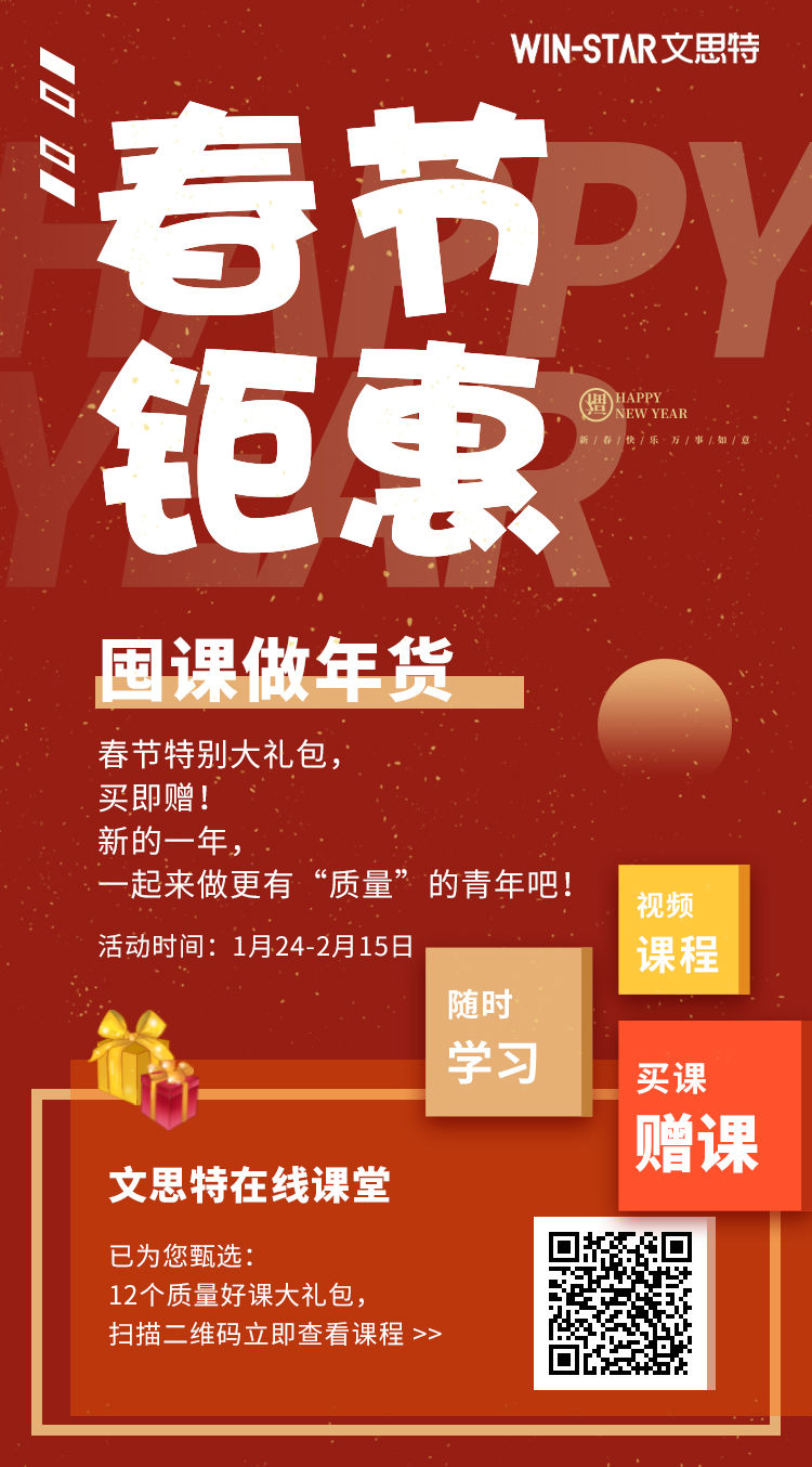 【春节钜惠】囤课做年货,春节特别大礼包,买课赠课!