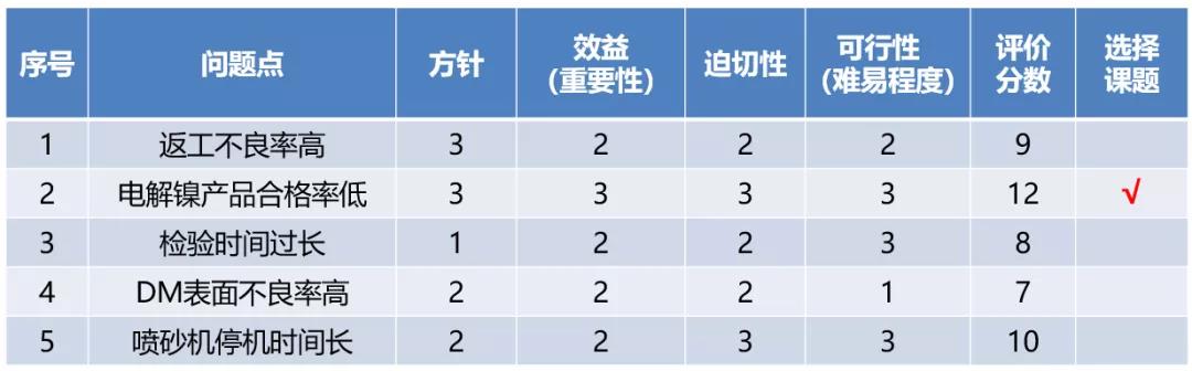 2、对所选的课题,要求学员说明选择的理由,并帮助判定课题对QCC小组成员的适宜性。