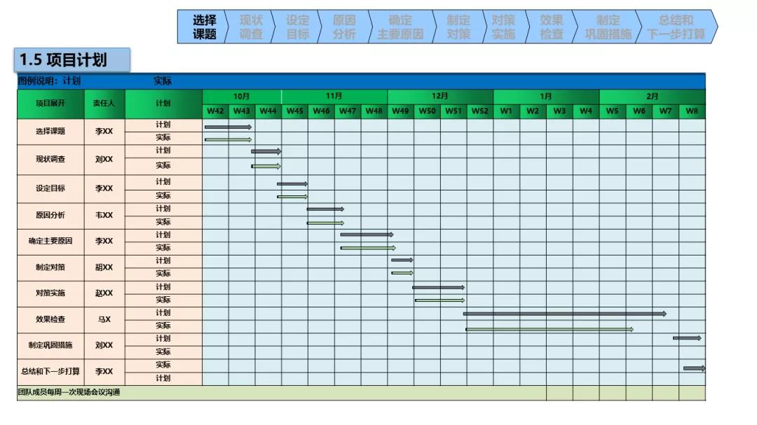 3、选定课题后,根据课题选择合适的小组成员,指导学员制定QCC项目计划。