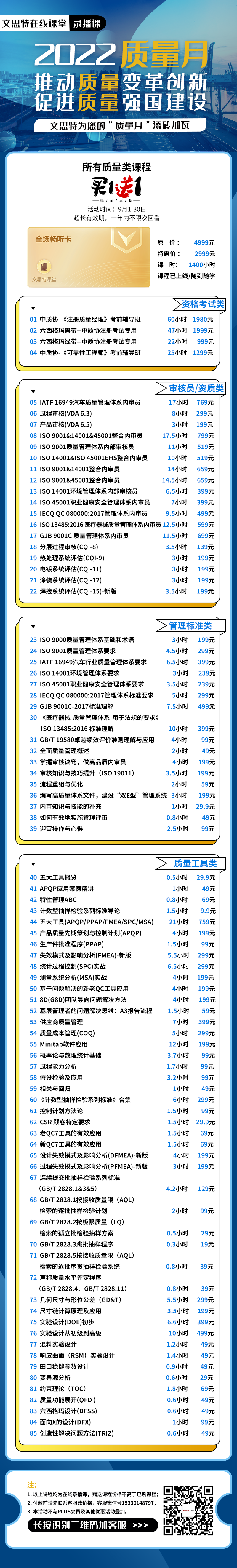 质量类课程买一赠一低至五折,文思特为您的“质量月”添砖加瓦!