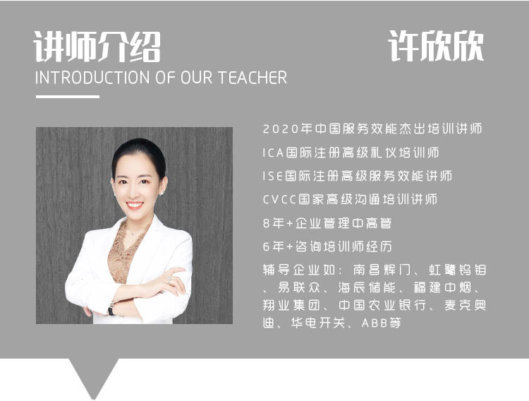 可操作性强:老师通过大量真实的职场需求和案例分析,以及在实际工作生活中多方验证课程中提到的各种方法,充分考虑课程的适用性和可迁移性,以确保中基层管理通过学本课程后能够直接运用工具解决沟通难题。