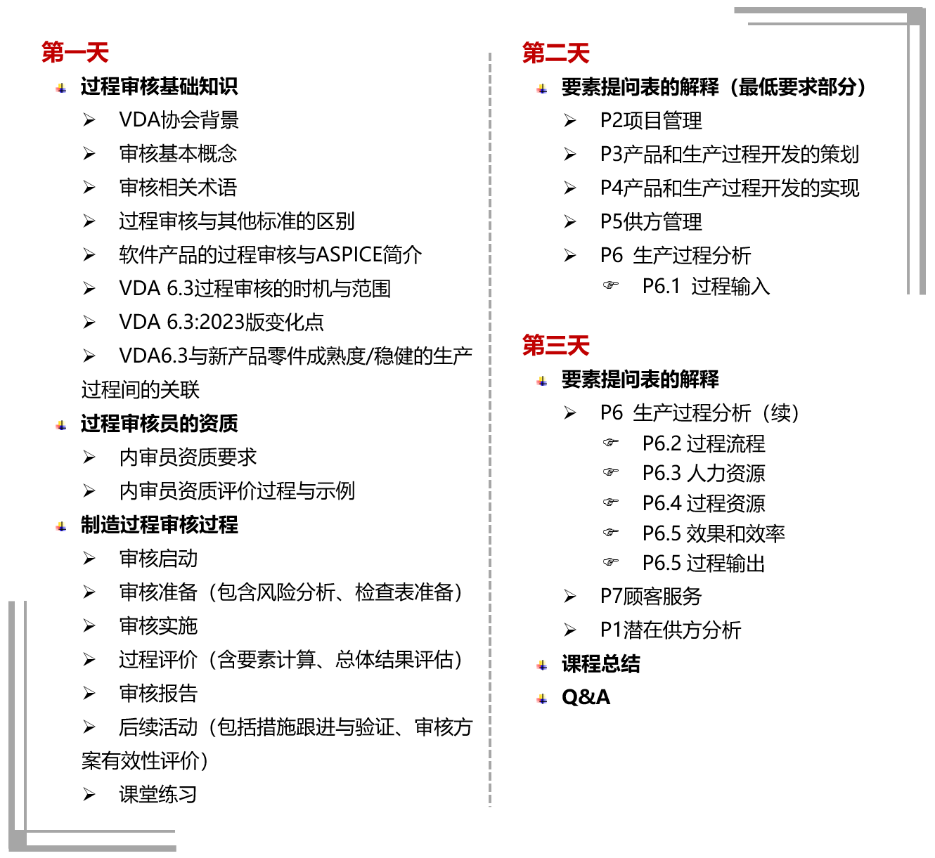 - 从应用和审核准备两个角度掌握VDA 6.3过程审核标准的要求