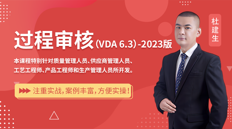 本过程审核课程是基于VDA 6.3:2023新版手册开发,组织可以通过实施过程审核对(内、外部的)质量能力进行评定,使过程能达到受控和有能力,并能在各种干扰因素的影响下仍然稳定受控。只有通过受控的、有能力的过程才能实现保证产品质量和降低检测费用等目的。