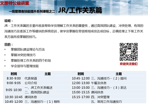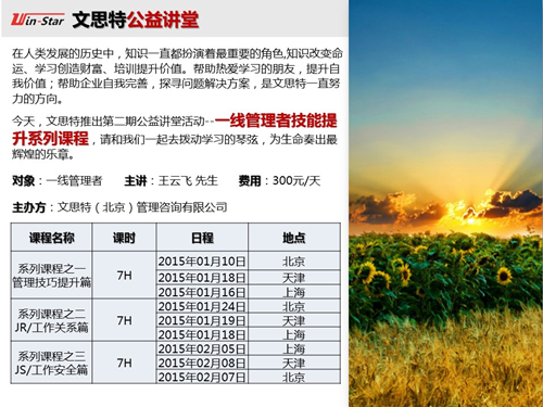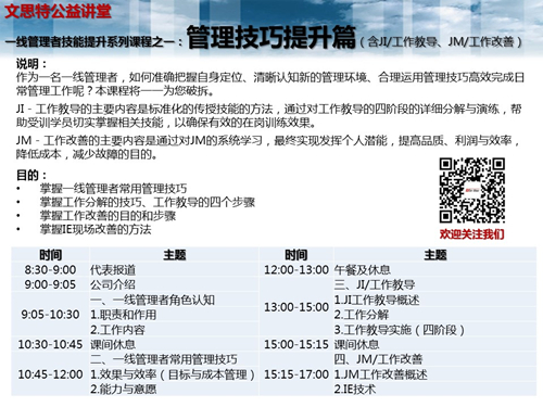 文思特公益讲堂:一线管理人员技能提升系列课程