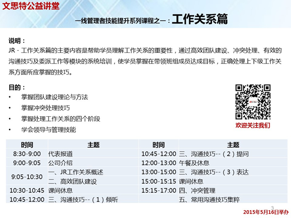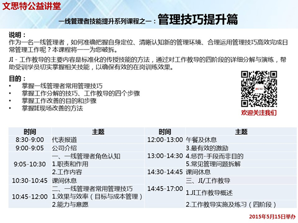 文思特公益讲堂:“一线管理者技能提升”系列课程即将在青岛举办