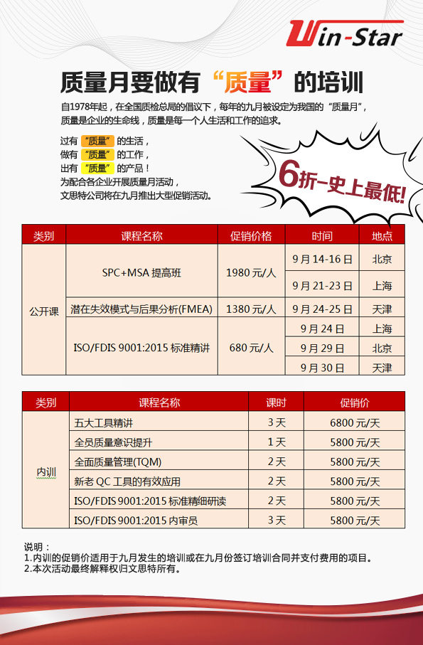 质量月要做有“质量”的培训--一大波质量课程九月特惠来袭!