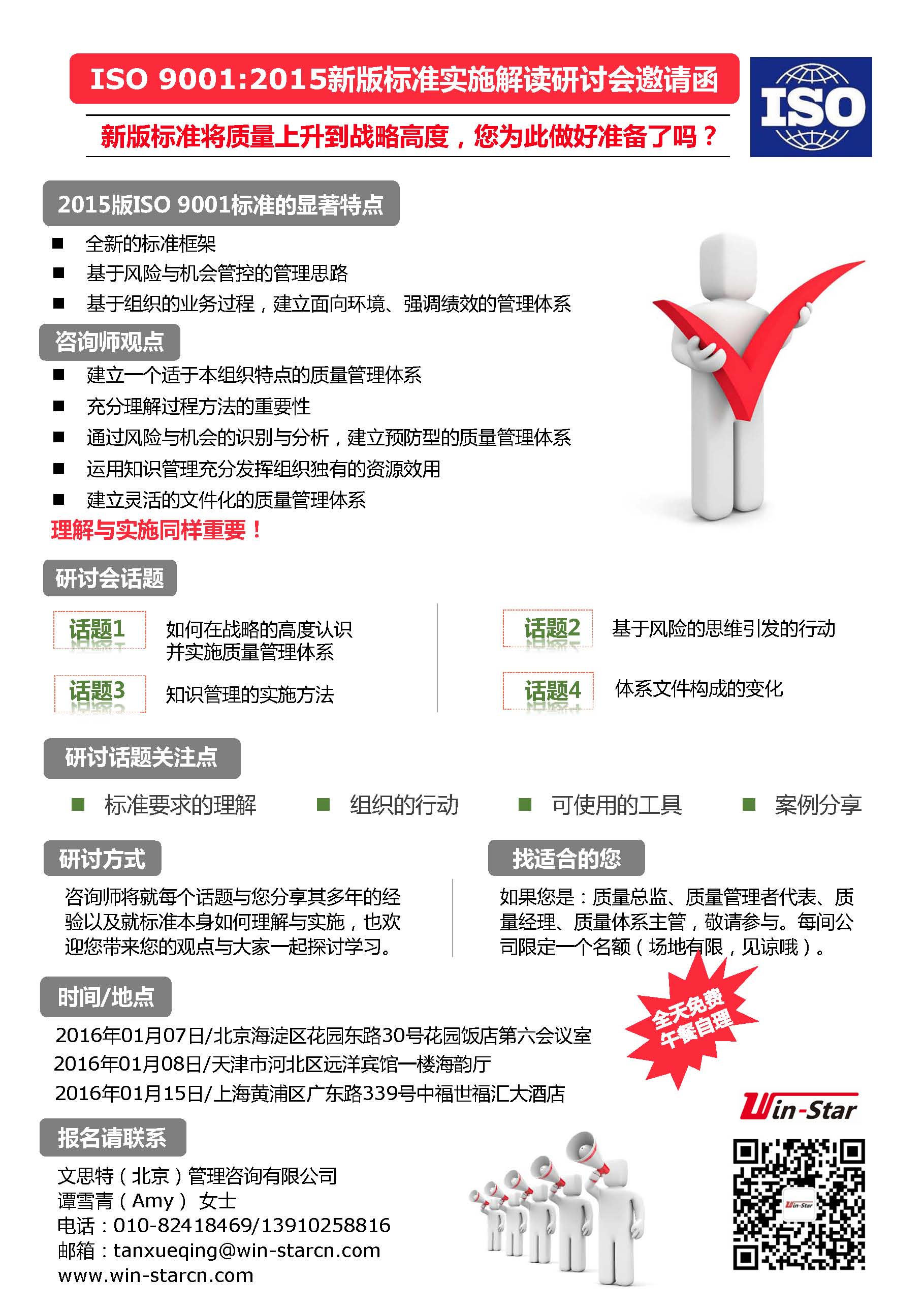 ISO 9001:2015新版标准实施解读研讨会邀请函