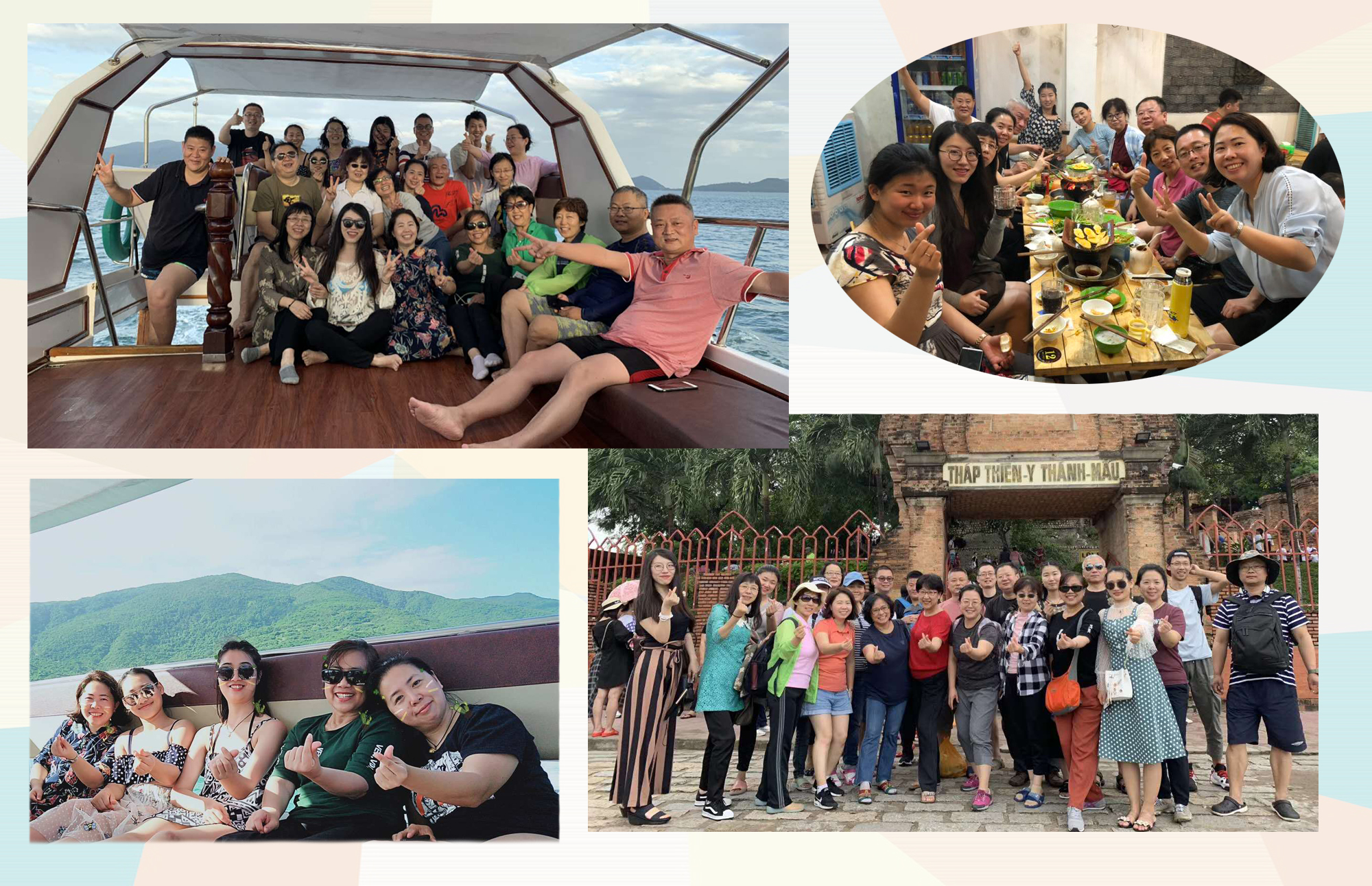 旅游历程中公司员工及家属游玩了占婆塔、珍珠岛、珊瑚岛、情人岛、翡翠加工市场、五指岩、芽庄博物馆等旅游景点,先后体验了海上缆车、游艇出海、海上钓鱼、潜水、海鲜烧烤、泥浆浴等等内容;尽情享受温润清新的海风、欣赏沉浮拍岸的海浪、领略异国别样的风情。