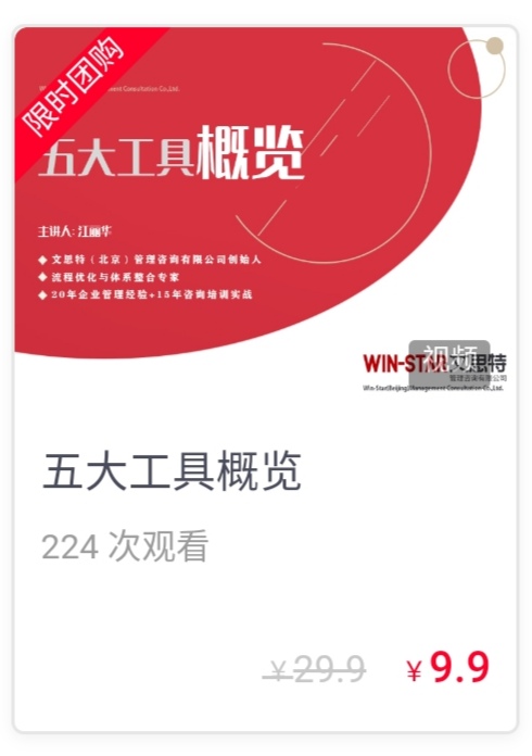 | 限时团购1-五大工具概览 | 限时团购2-江老师讲管理 | 好课免费听-流程重组与优化 |