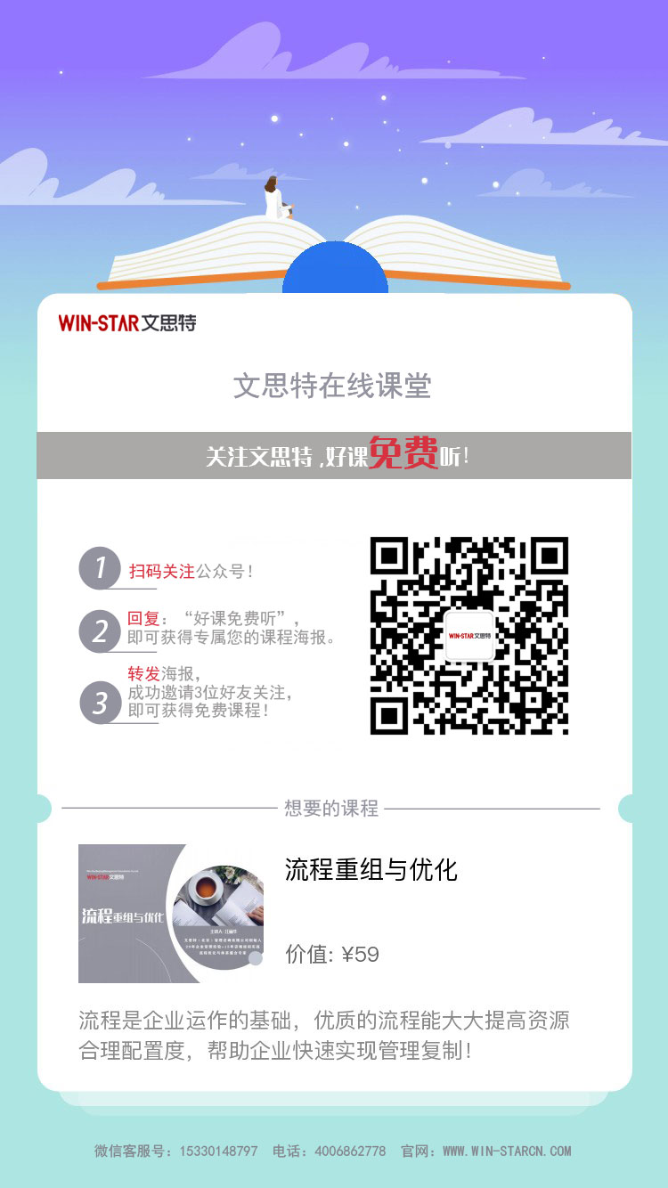 方式3: 关注“文思特管理咨询公司”微信公众号, 底部菜单“在线课堂”点击进入。 |