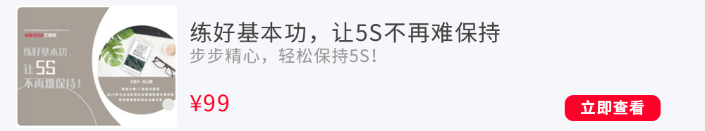 3) 为企业培养5S管理人才,每个参与的员工都能熟练掌握5S,并进行推广和传递,使用PDCA的方法,持续推动公司做好5S,最终达到世界级管理水平。