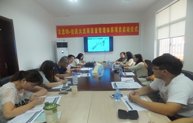 为了生产出高质量的产品,实现标准化的管理,打造一流的企业品牌,上海合庆火龙果产业股份有限公司联手文思特管理咨询有限公司,于2015年7月4日早上9:00,在公司总部召开了“文思特/合庆火龙果质量管理体系建设项目”启动大会。合庆火龙果公司高层领导、文思特公司的项目咨询老师及项目组全体成员均参加了本次会议。