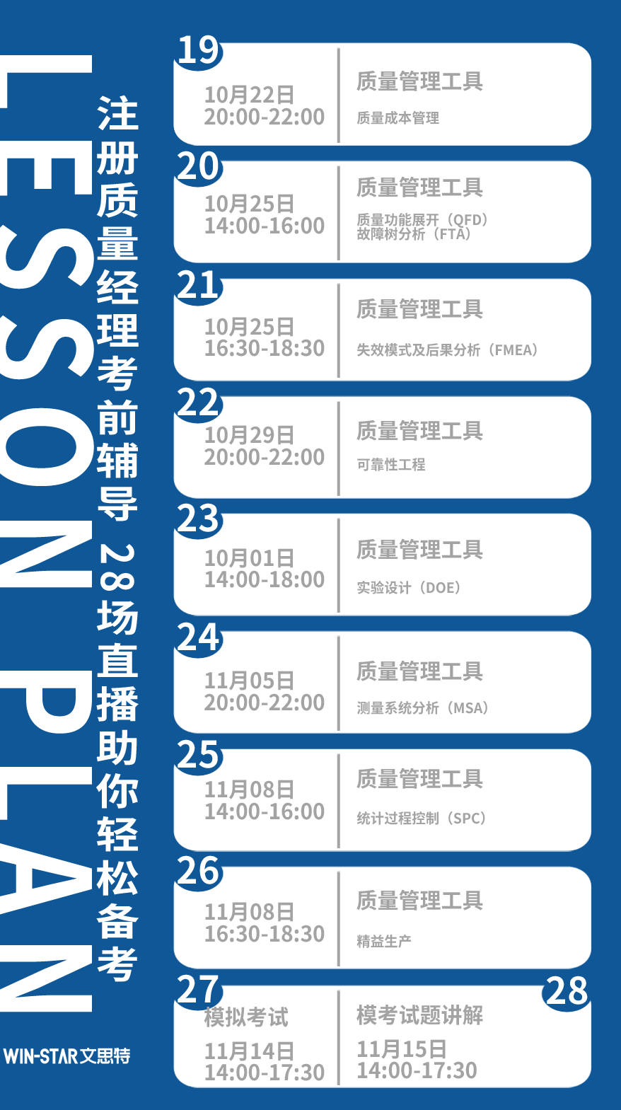 直播课 | 注册质量经理考前辅导班(适用于中国质量协会质量经理考试)