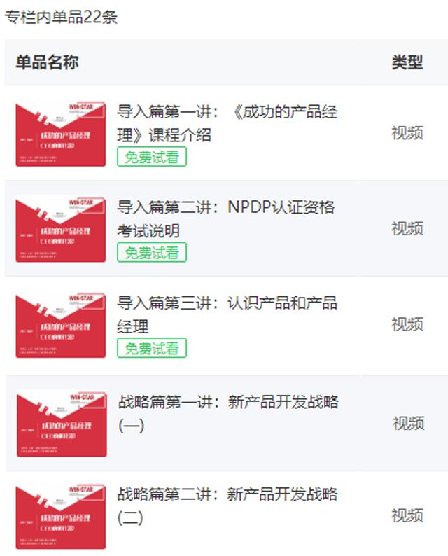 《成功的产品经理》已上线内容: