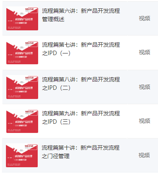项目管理(已上线) 风险管理(已上线) 新产品开发流程 l 新产品开发流程管理综述(已上线) l 集成产品开发(IPD)(已上线) l 门径管理(Stage-gate)(已上线) l 敏捷开发(Agile) l 精益产品开发 市场营销 |