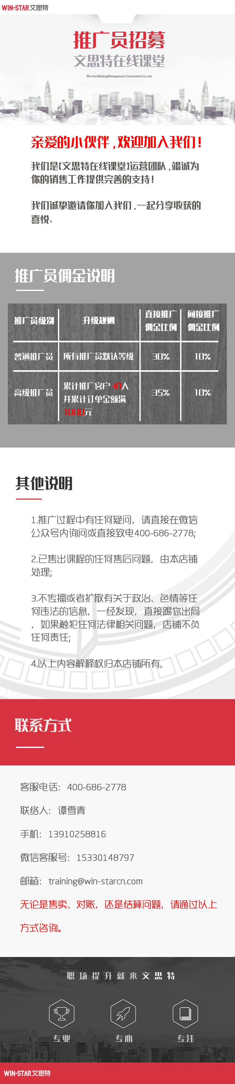 北京总部 电话:400-686-2778 邮箱:training@win-starcn.com 地址:北京市海淀区花园东路30号花园饭店5418室