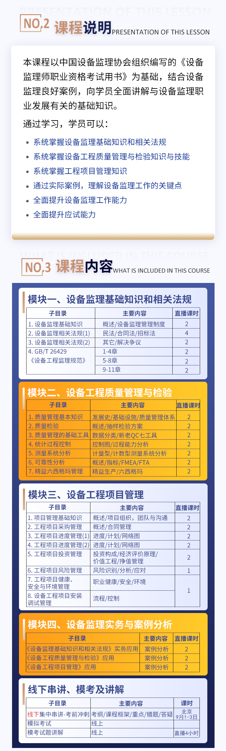 - 系统掌握设备监理基础知识和相关法规